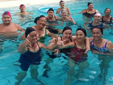 Aulas de hidroginástica voltadas para saúde, mobilidade e qualidade de vida. Ideal para quem busca atividade física com baixo impacto, acompanhamento e um ambiente acolhedor.