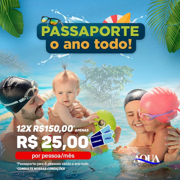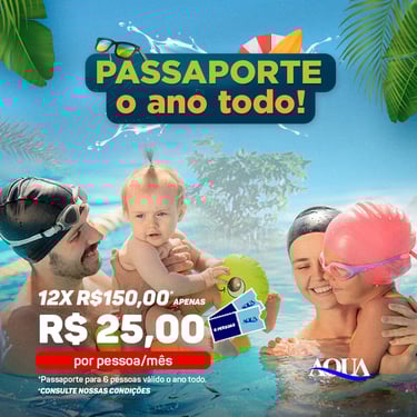 No Clube AQUA, você escolhe como aproveitar: ingresso avulso, passaporte mensal ou passaporte anual. Tudo pensado para quem quer lazer frequente, sem pesar no bolso.