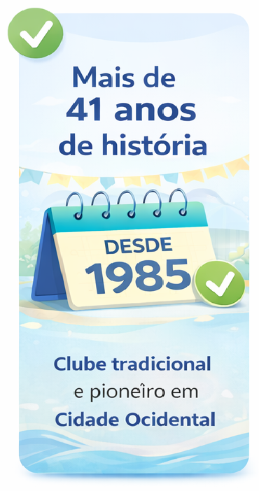 O Clube AQUA é referência em lazer, natação e hidroginástica em Cidade Ocidental há mais de 41 anos.